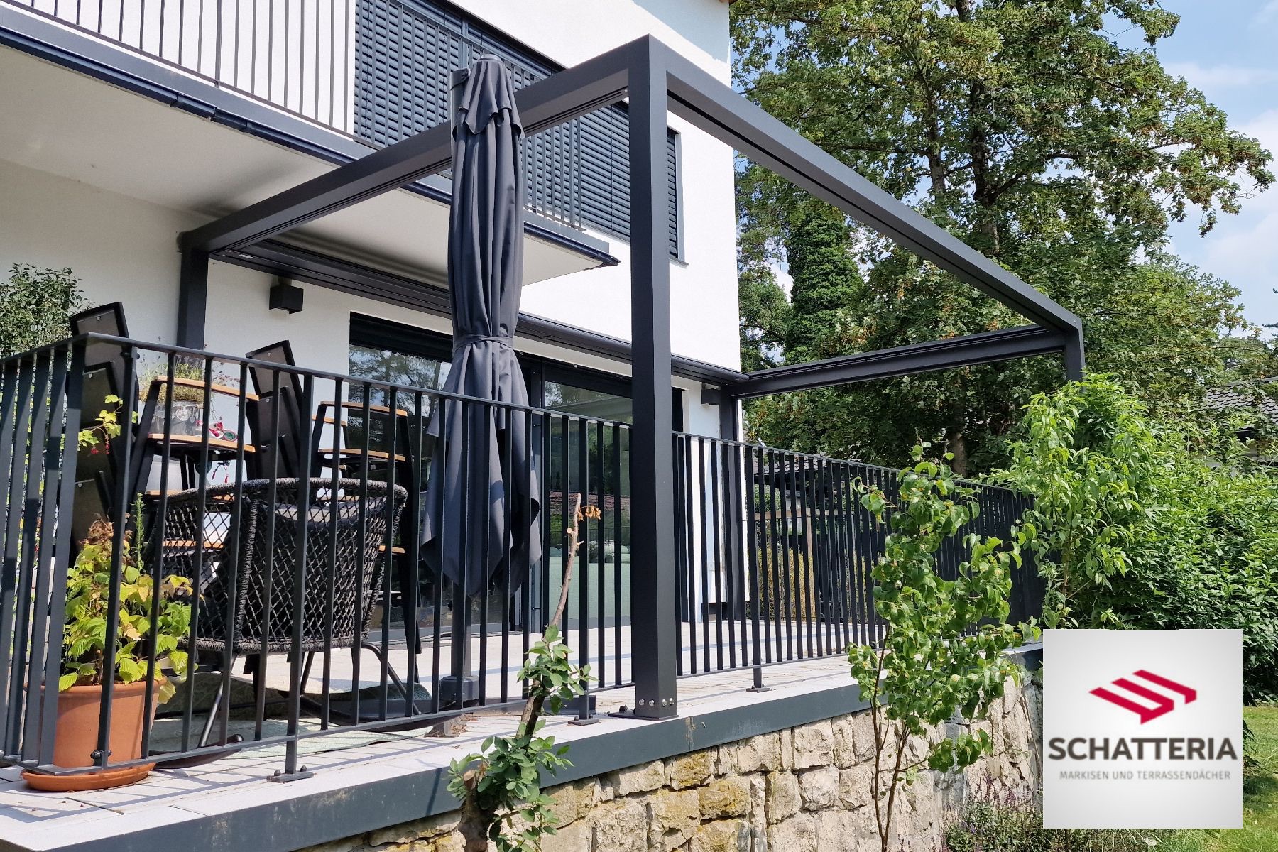 Erweiterbar: seitliche Beschattung, seitlicher Wind- und Sichtschutz