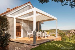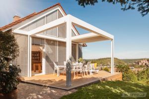 Das besondere Highlight für Ihre Terrasse – Die Terrassenüberdachung mit dreh- und einfahrbaren Dachlamellen sorgt für Cabrio-Feeling auf Ihrer Terrasse