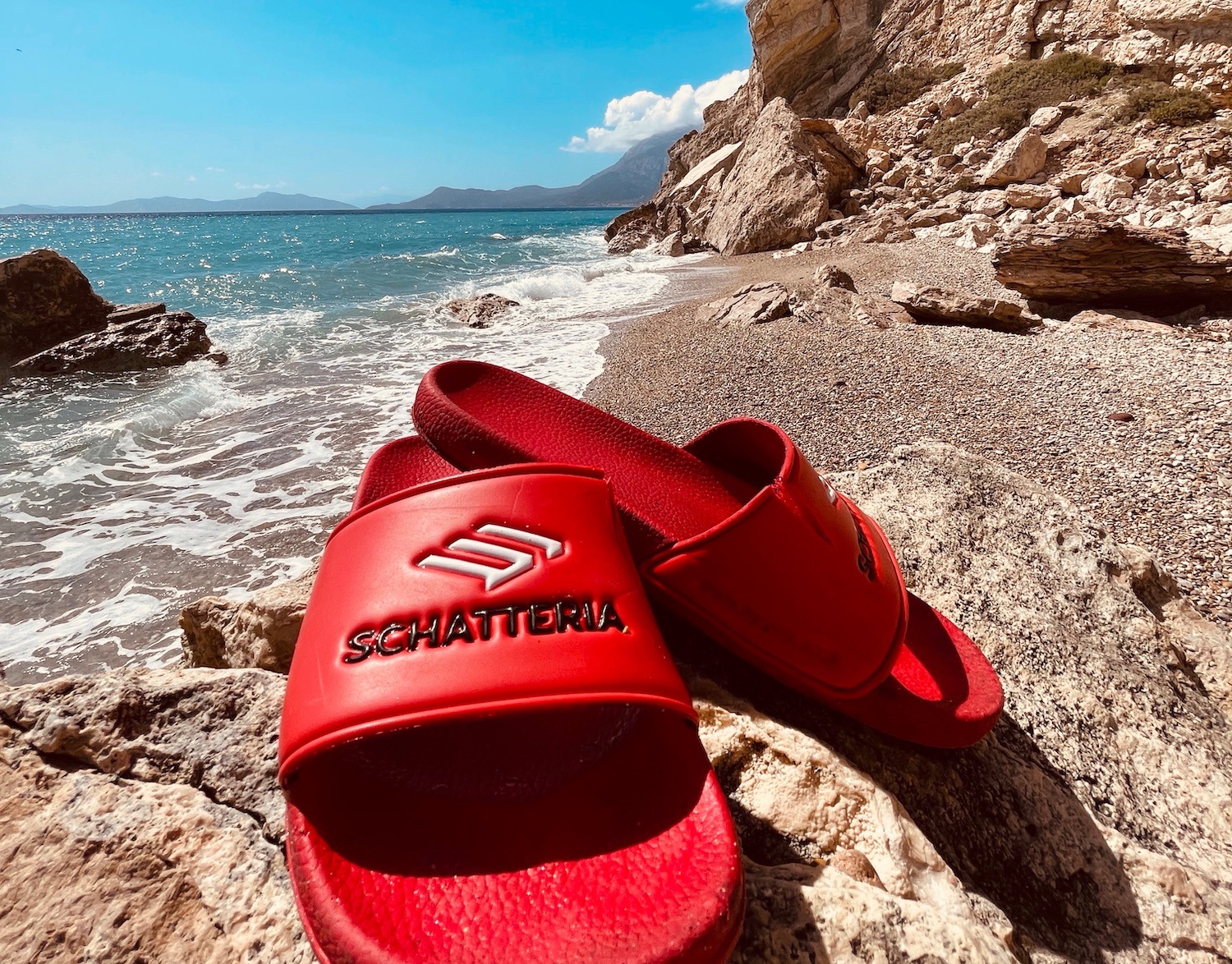 💛 Mache dein eigenes Outdoor Living Lebensgefühl zur Botschaft. Wir bei Schatteria® sind positiv verrückte Menschen und leben unsere Produkte mit Herz & Leidenschaft. Und wenn es mit uns mal wieder komplett durchgeht, dann passiert sowas wie unsere Schattiletten Badelatschen. Gepflegter Style am Beach, am Pool, zu Hause, im Garten und auf der Terrasse. Unsere Schattiletten gibt’s im knalligen Feuerrot. Fallen etwas kleiner aus, darum bitte 2 Nummern größer als deine gewohnte Schuhgröße bestellen.