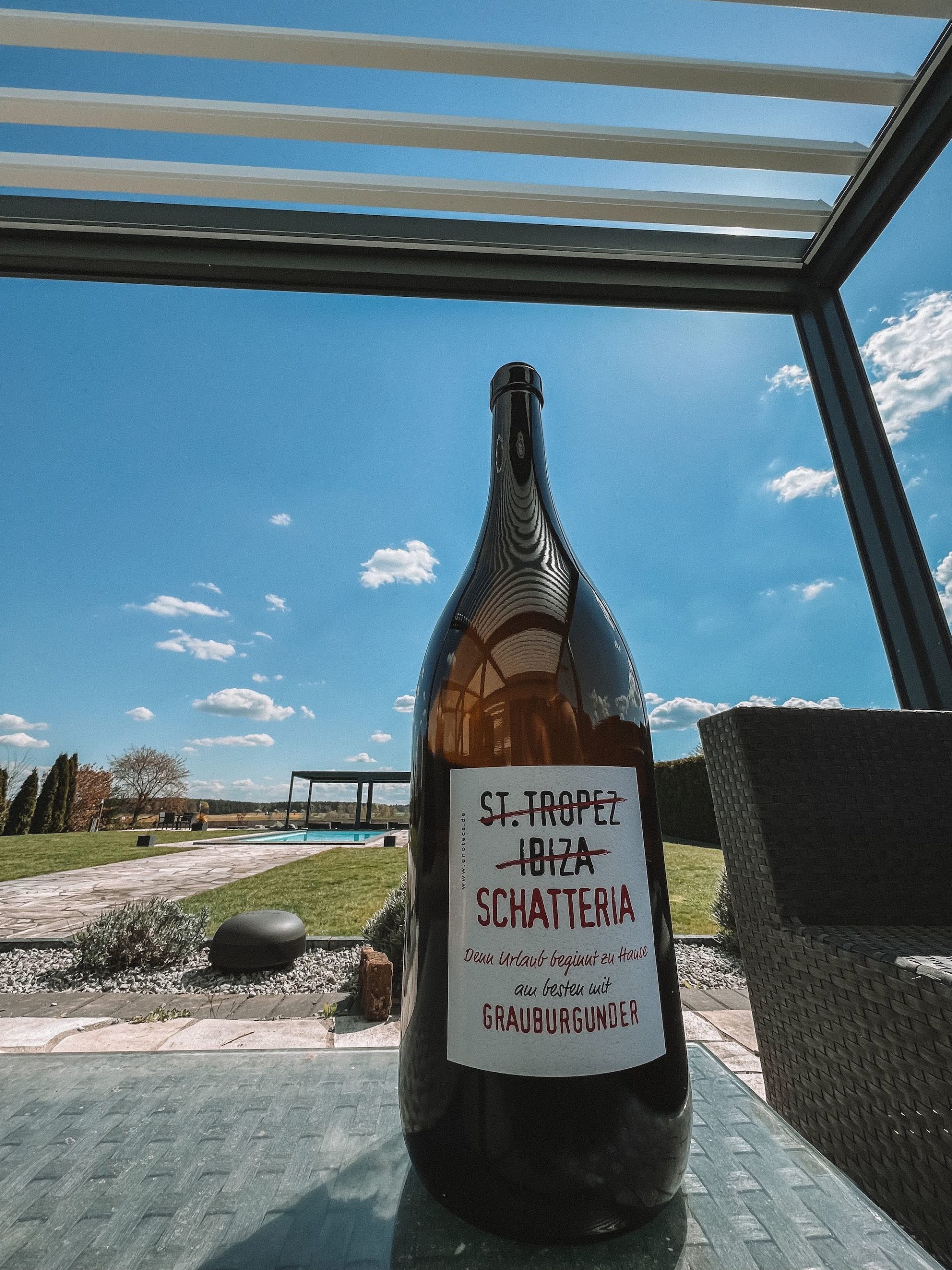 It’s wine o’clock: Genieße deinen Alltag mit einer guten Flasche Wein. Gut gekühlt serviert, ist unser Schatteria Weißwein der perfekte Begleiter für entspanntes Daydrinking. Denn Urlaub beginnt zu Hause … am besten mit einem Grauburgunder