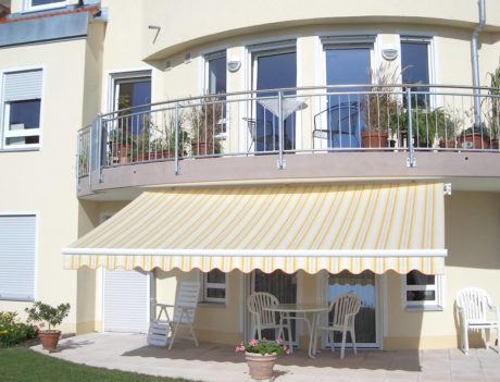 Die Markise Vario ist eine offene Gelenkarmmarkise. Die Gelenkarmmarkise Vario ist mit einem hochwertigen Kipparmlager ausgestattet, welches besonders bei tiefstehender Sonne perfekten Sonnenschutz bietet. Besonders beliebt: Die Vario als Doppelmarkise mit integrierter Senkrechtmarkise als zusätzlicher Sonnen- und Sichtschutz.