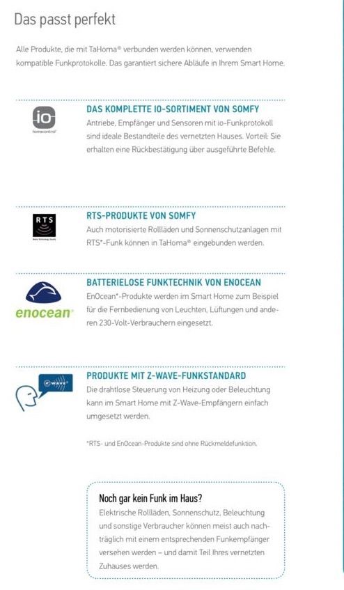 Somfy Bauteile setzten auf die beiden Funk-Protokolle iO und RTS. In beiden Funkprotokollen ist die Kommunikation zwischen Ihren Systemen ist verschlüsselt und damit extrem sicher!
