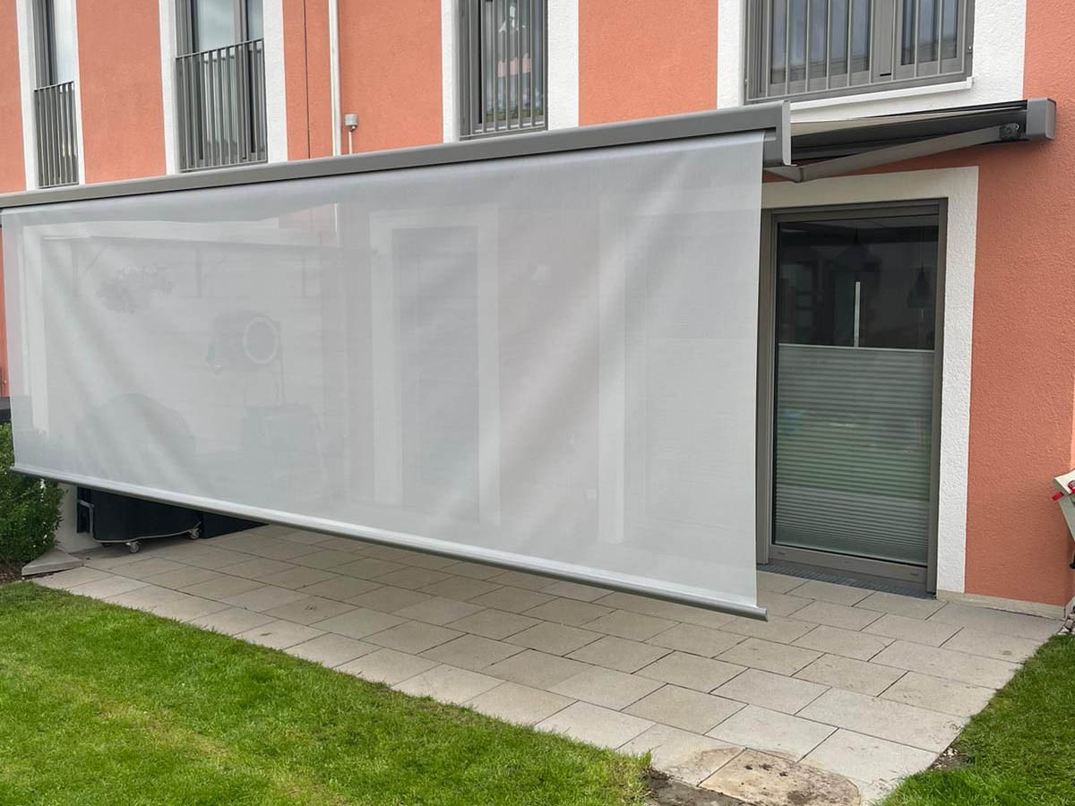 Als Zusatzausstattung verfügt diese Markise über ein Variovolant. Dadurch lässt sich die Markise senkrecht verlängern und dient auch bei niedrig stehender Sonne noch zuverlässig als Schattenspender. Die Mechanik funktioniert elektrisch und wird per Fernbedienung oder App mit einem Motor gesteuert.