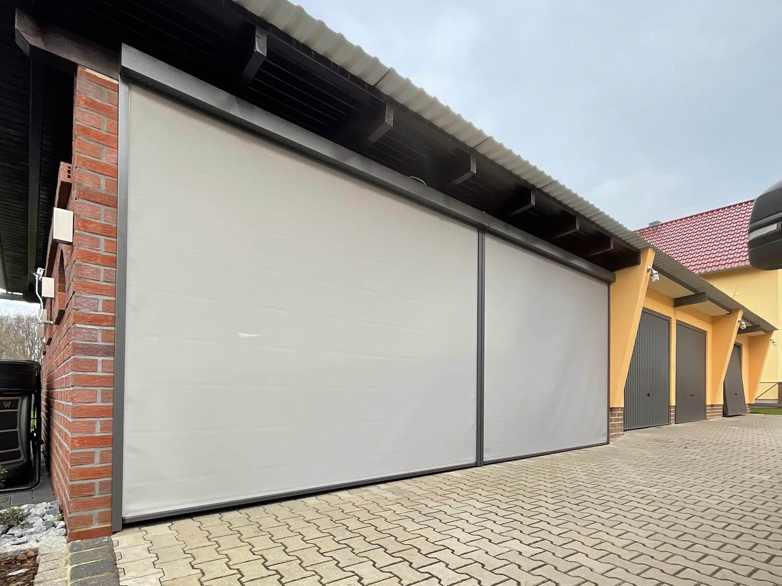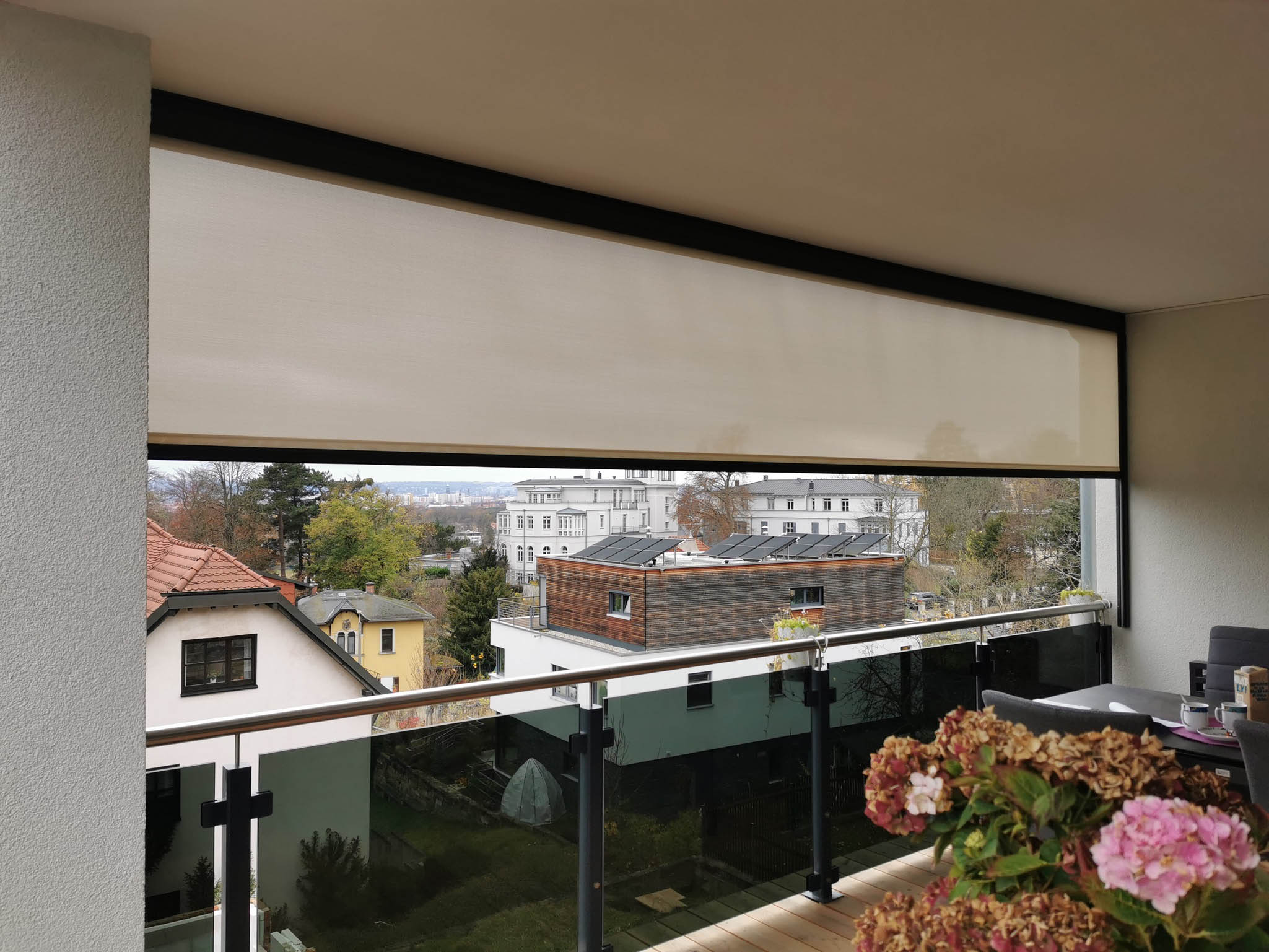 Hinweis: Bei den Bildern handelt es sich um Beispielbilder von Senkrechtmarkisen mit Kassette.
