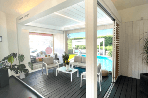 - Pergolamarkisen mit integrierten Senkrechtmarkisen